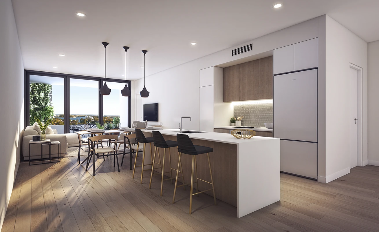 Elevated high above the surrounding streetscape, Breeze enjoys a commanding position unlike anything else you’ll find in Sydney. Everyday living is highlighted by stunning views of sparkling Parramatta River, Breakfast Point, leafy district views and the iconic Sydney city skyline. On a clear day, some views stretch all the way to the Blue Mountains.
